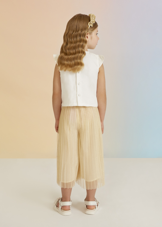 Culotte Abel&Lula de niña para ceremonia de la nueva colección 2023de Abel&Lula, confeccionado en tull plisado en color champagne, con cintura elastica.