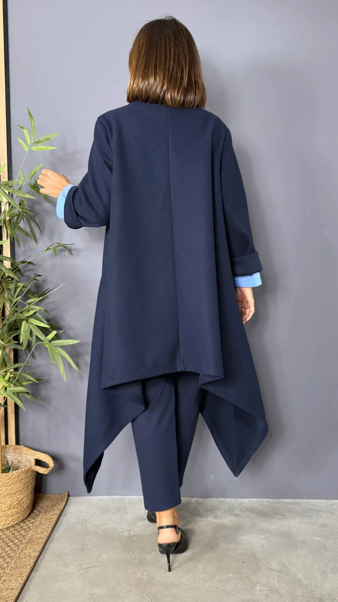Abrigo tipo capa paño AZUL OSCURO