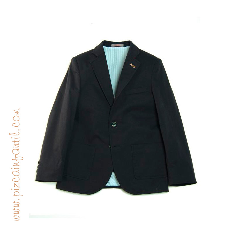 Americana niño de la Marca One Varones. Americana azul marino liso, forrada con tela a rayas. Ideal para ceremonias.