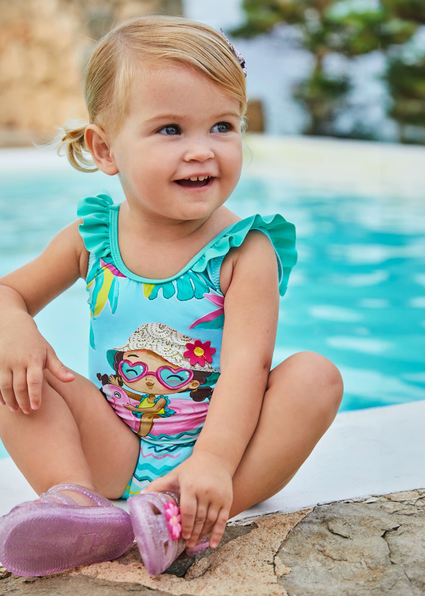 Bañador serigrafía estampado volante entre 12-36 meses.