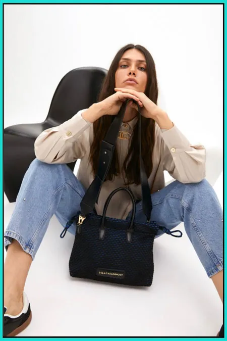 Bandolera Tejido Rejilla Interior Azul LOLA CASADEMUNT Ref. LF2504078