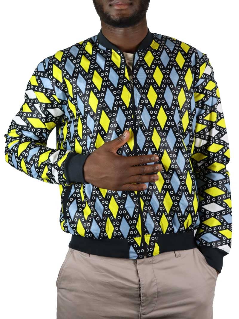 Mantente cómodo y a la moda con nuestras chaquetas bomber estampada wax africano ligeras unisex. Hechas de materiales transpirables, son perfectas para la primavera y el verano. Combínalas con tus prendas favoritas para un look relajado y fresco.