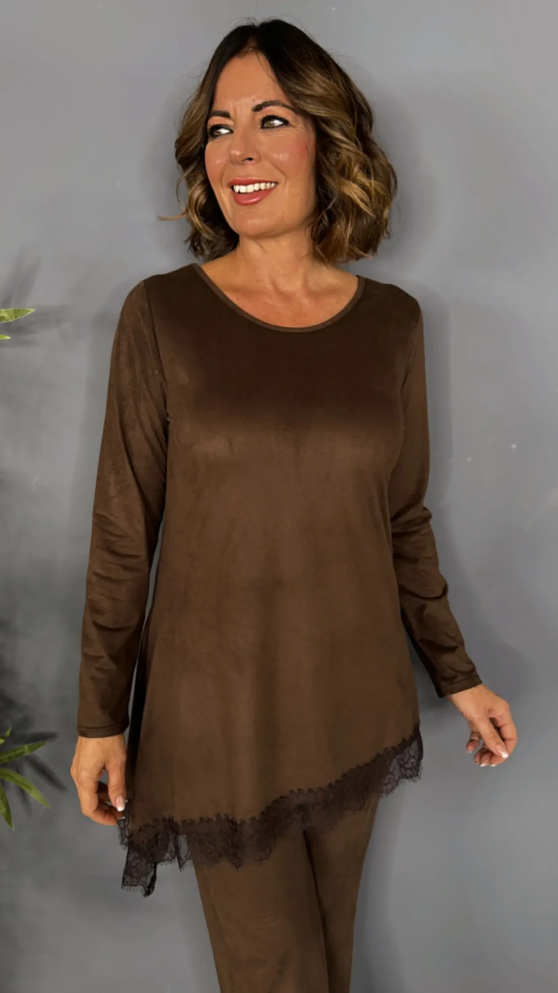Camiseta de antelina asimétrica CHOCOLATE