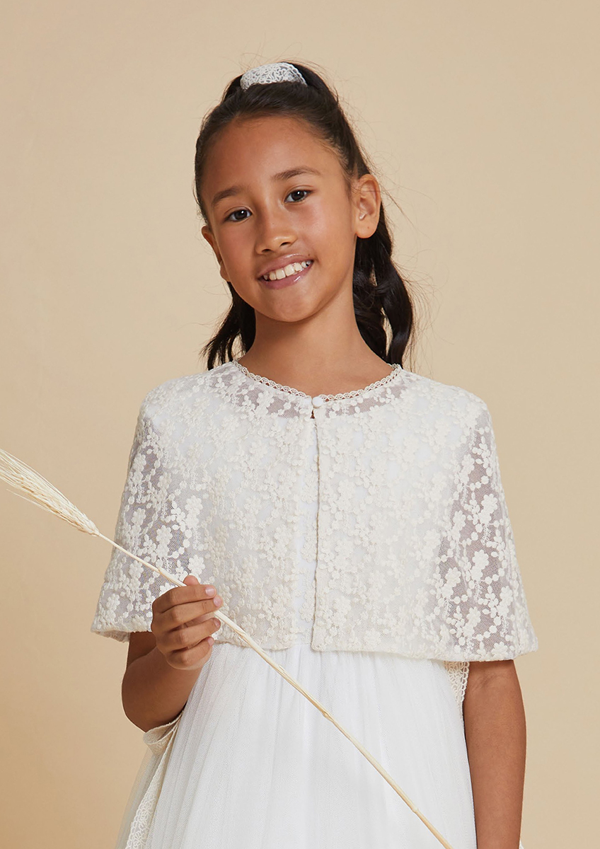Bolero-chaqueta tricot de comunión y ceremonia 2025 de la nueva colección de Amaya 2025 . Modelo 617807H Capa de niña de comunión o ceremonia para combinar con los vestidos de comunión y arras.