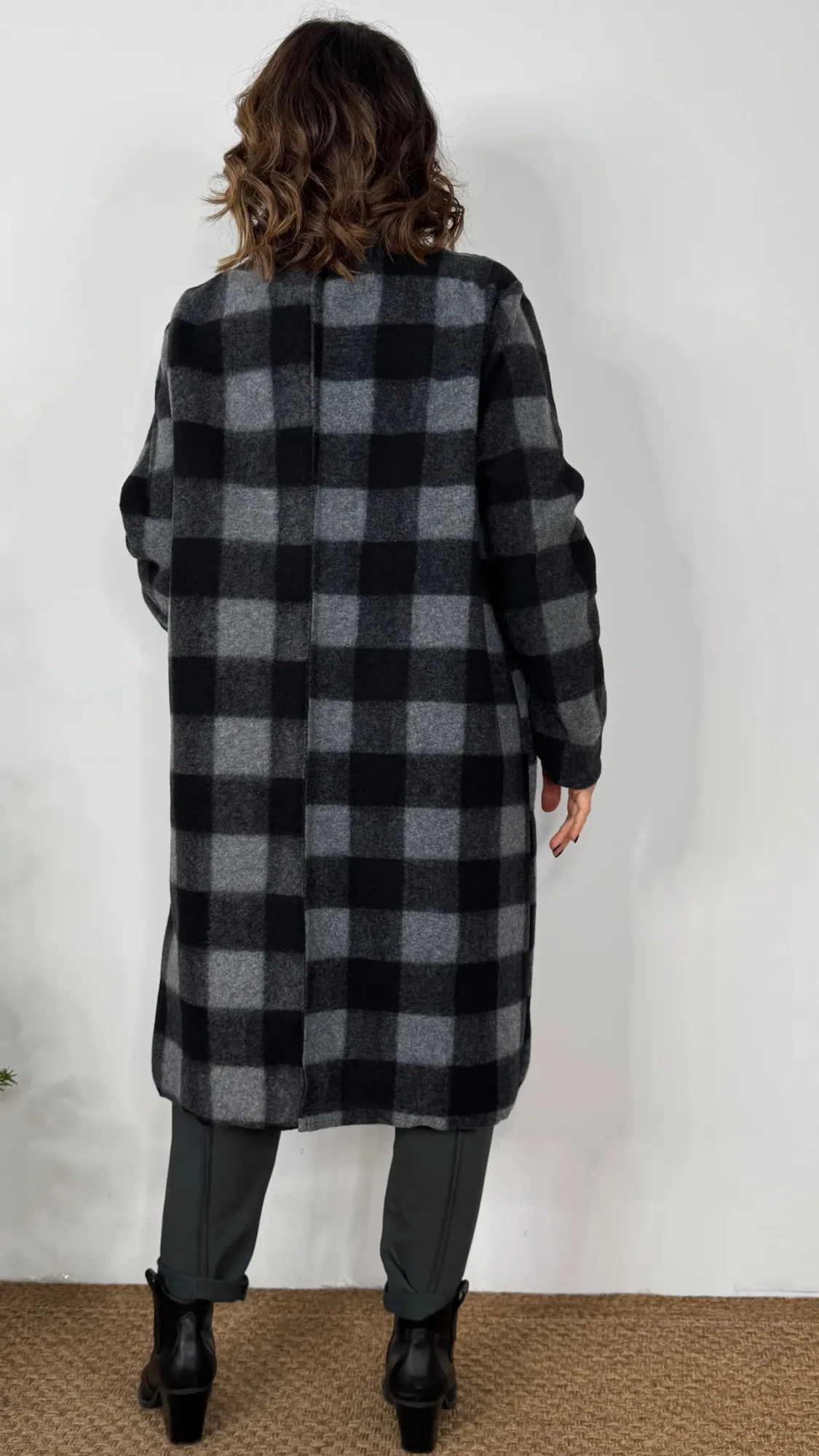 Medidas de la Chaqueta larga tipo capa de cuadros GRIS