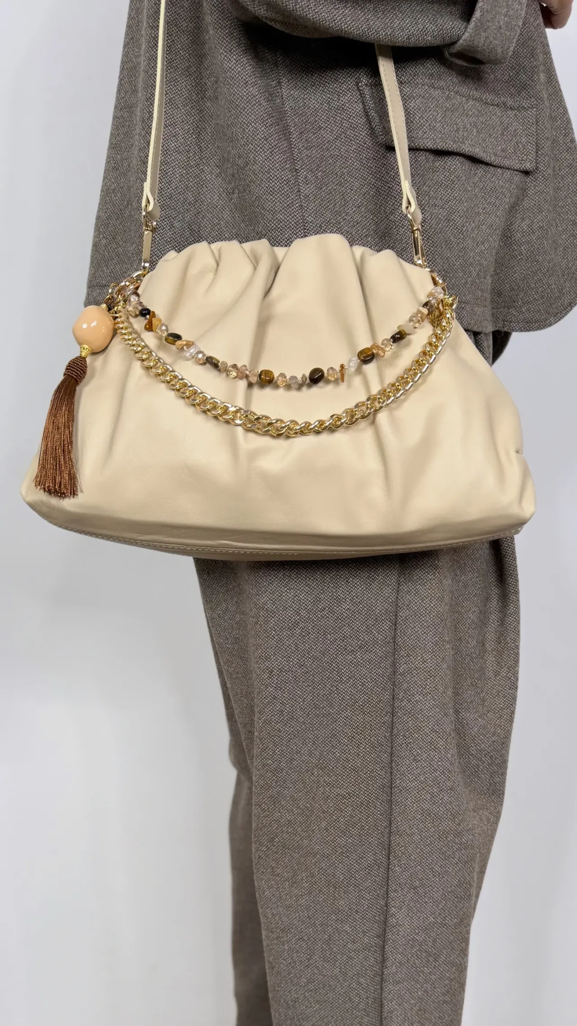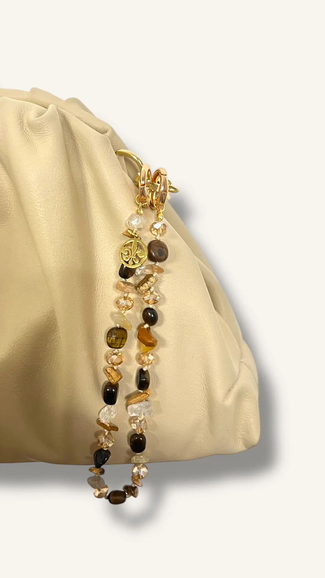 Charm para bolso detalle piedras y cuentas cristales BEIGE