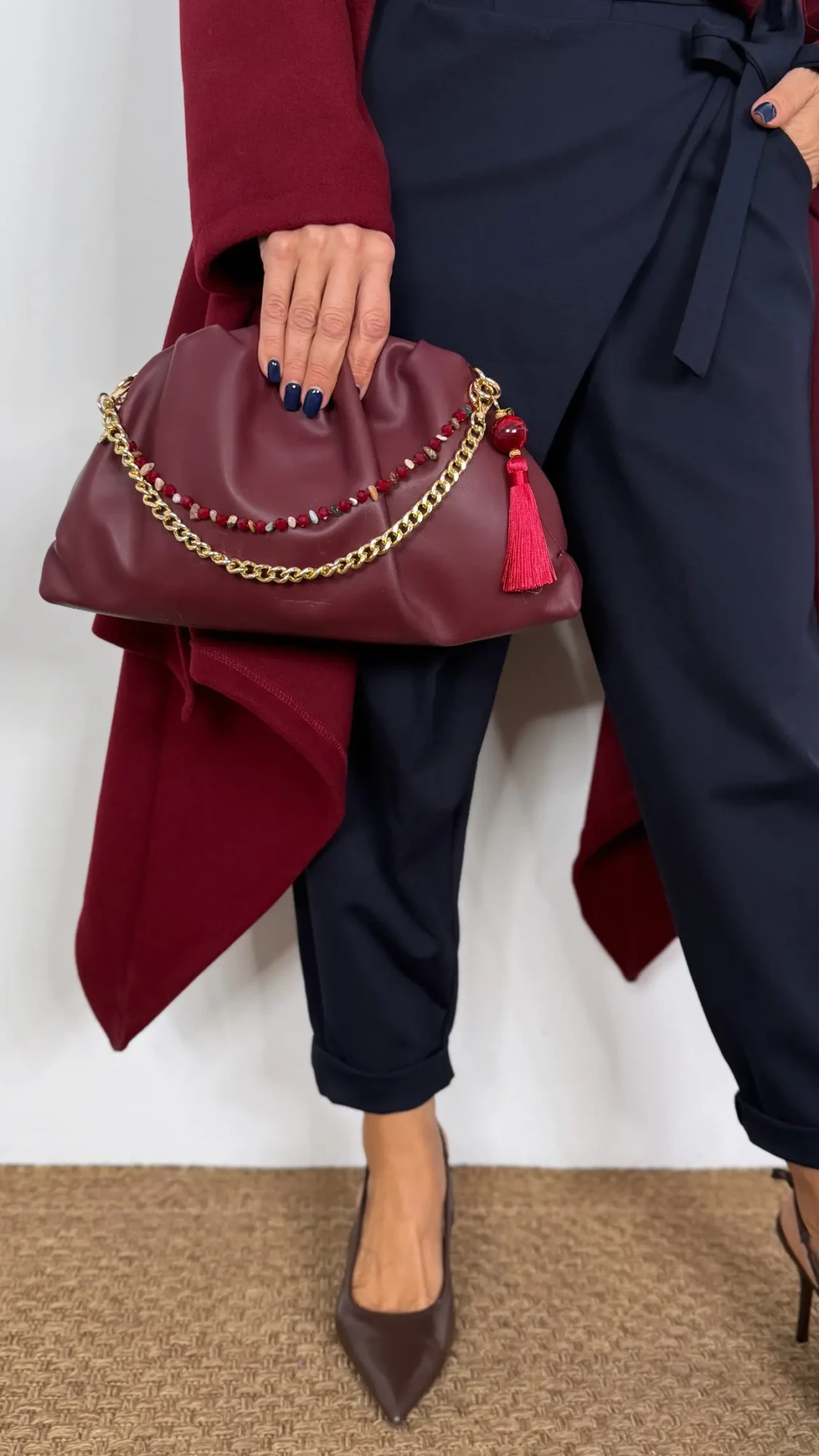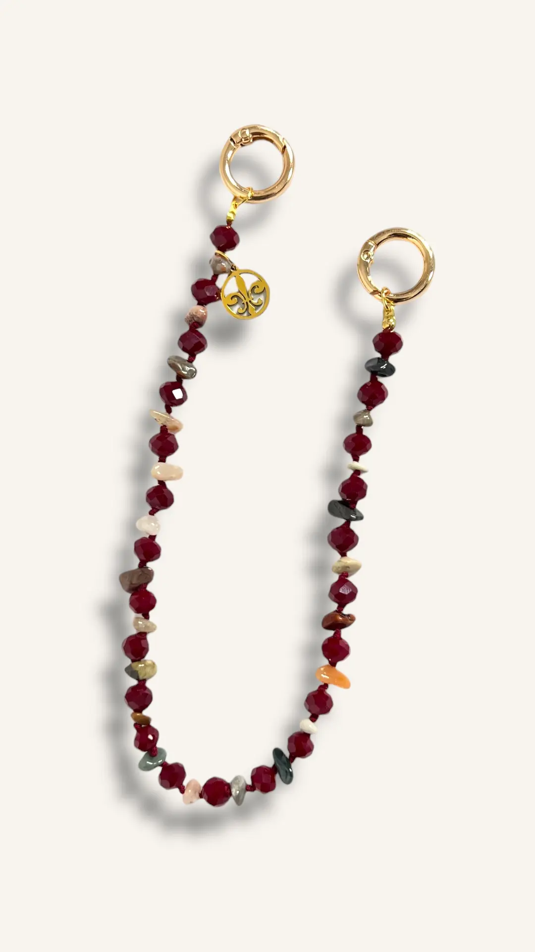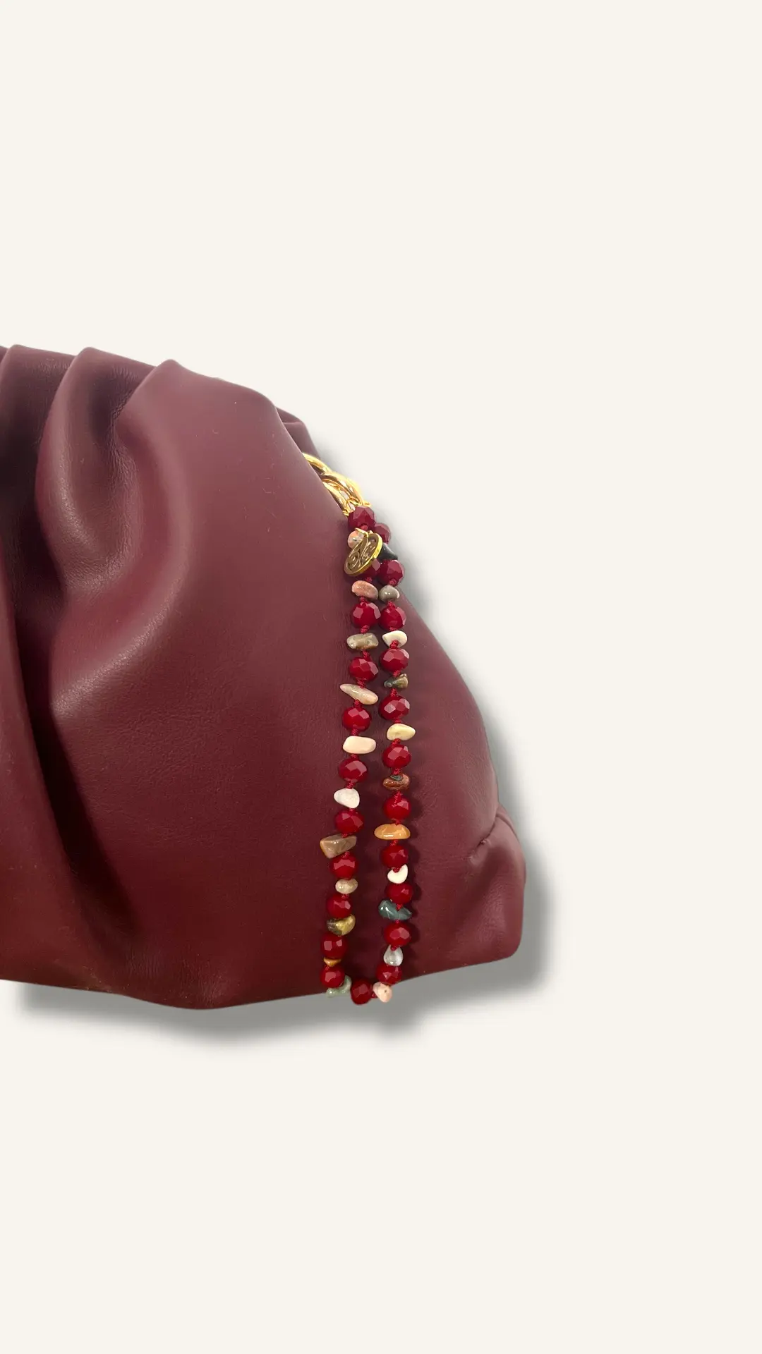 Charm para bolso detalle piedras y cuentas cristales GRANATE