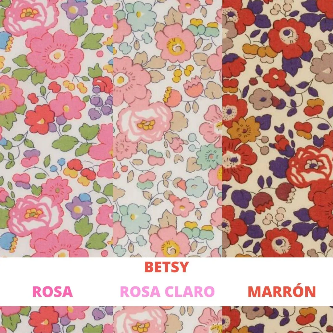 Puedes elegir el estampado Liberty London que desees y si no ves el tejido que te interesa puedes consultarnos a través del WhatsApp