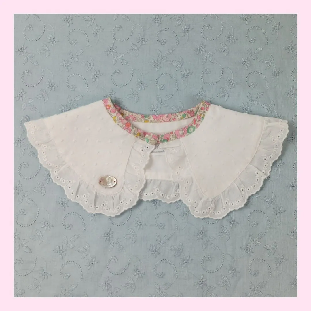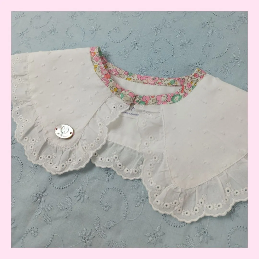 Cuello “quita y pon” confeccionado con plumeti, tira bordada y el remate con bies de la tela Liberty London que elijas . Ideal para combinar con jersey, sudaderas, camisas, vestidos, etc.