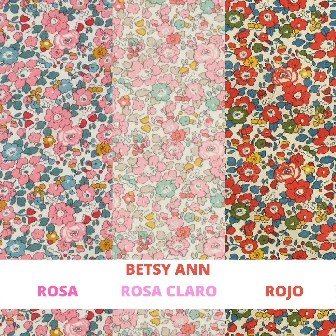 La tela del cuello de la foto es plumeti y el bies Liberty London Betsy Ann rosa claro,
