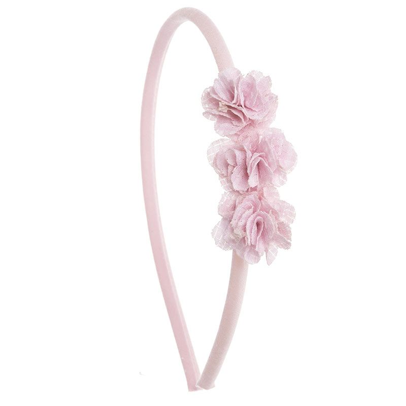 .DIADEMA BEBE TEJIDO MATE CON 3 FLORES MINI