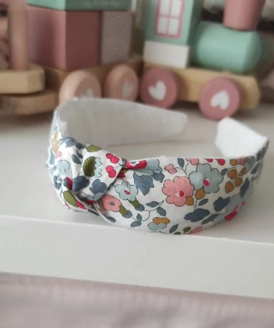 La diadema nudo Liberty estrecha es perfecta para completar cualquier look de tu pequeña. Es una diadema personalizable.