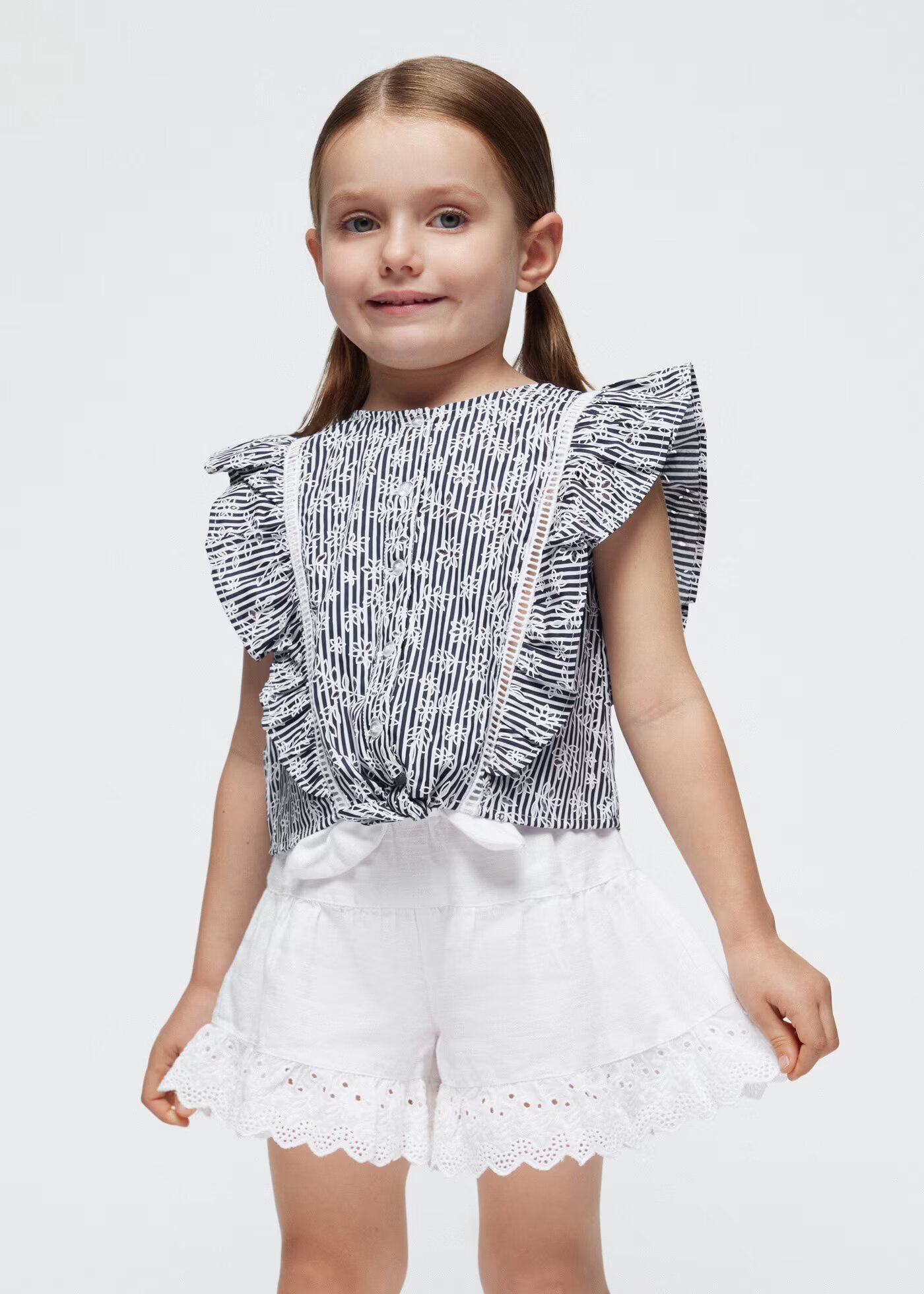 Falda pantalón lazo volantes perforados entre 2-9 años.