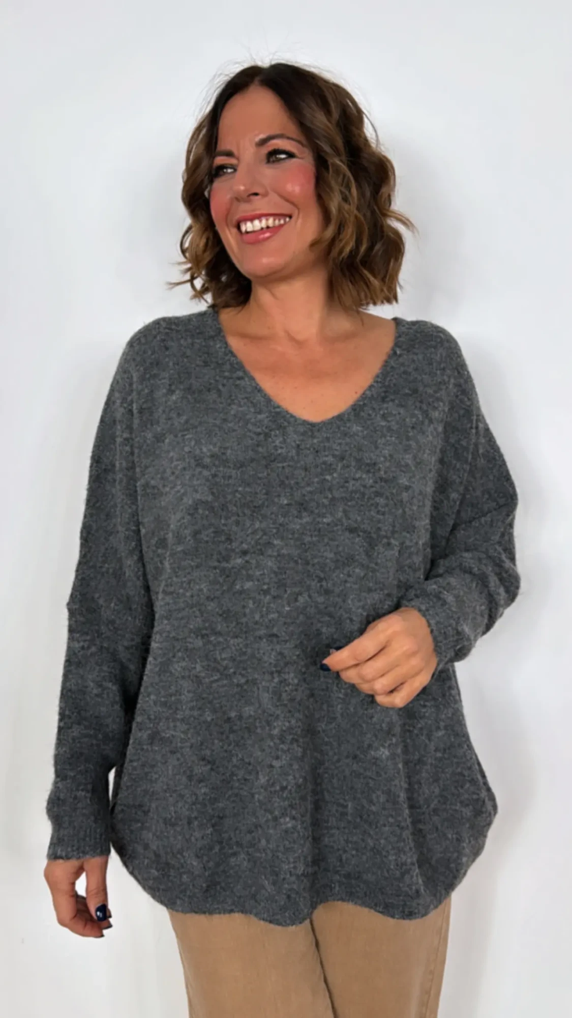 Medidas del Jersey de punto cuello pico GRIS