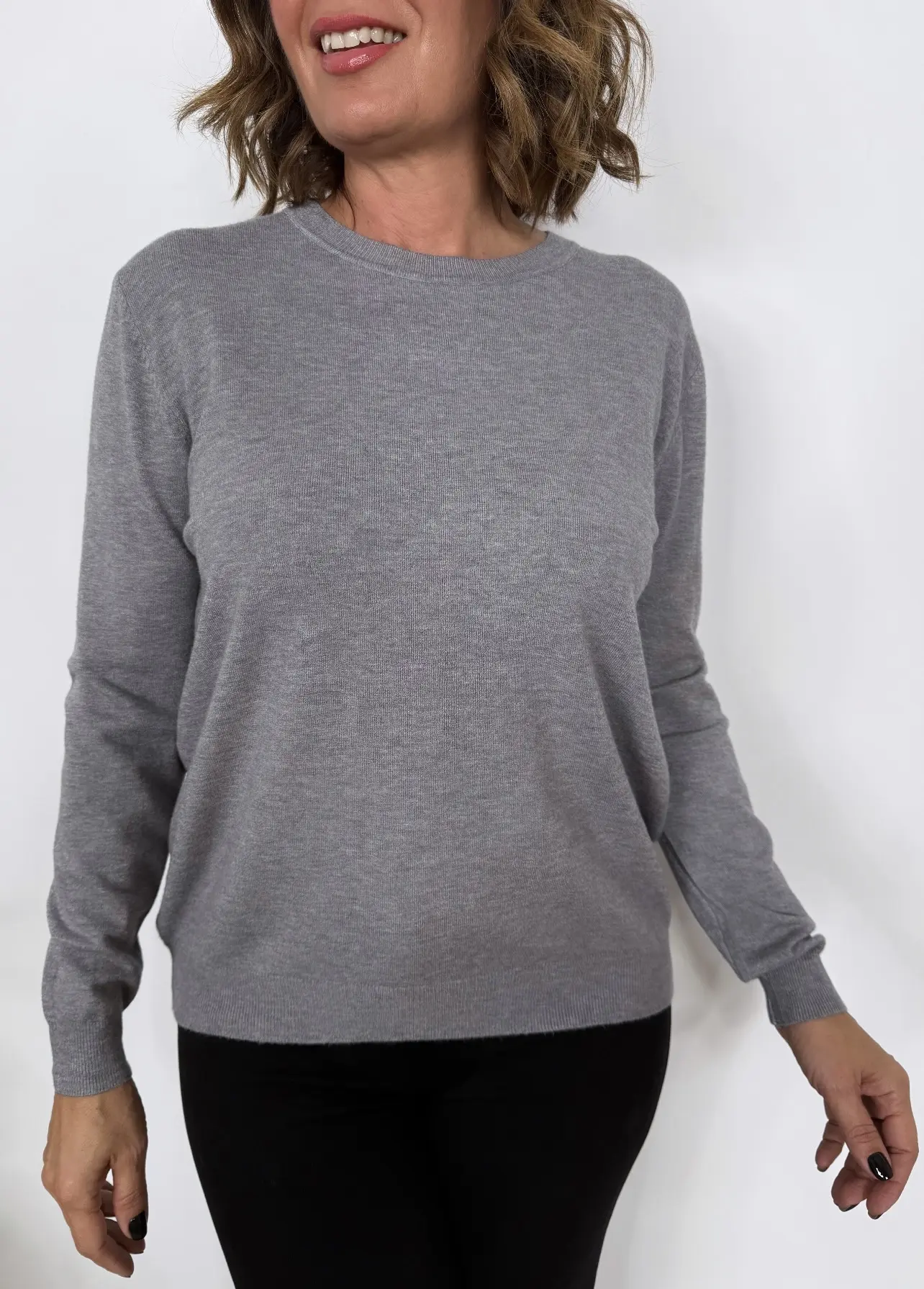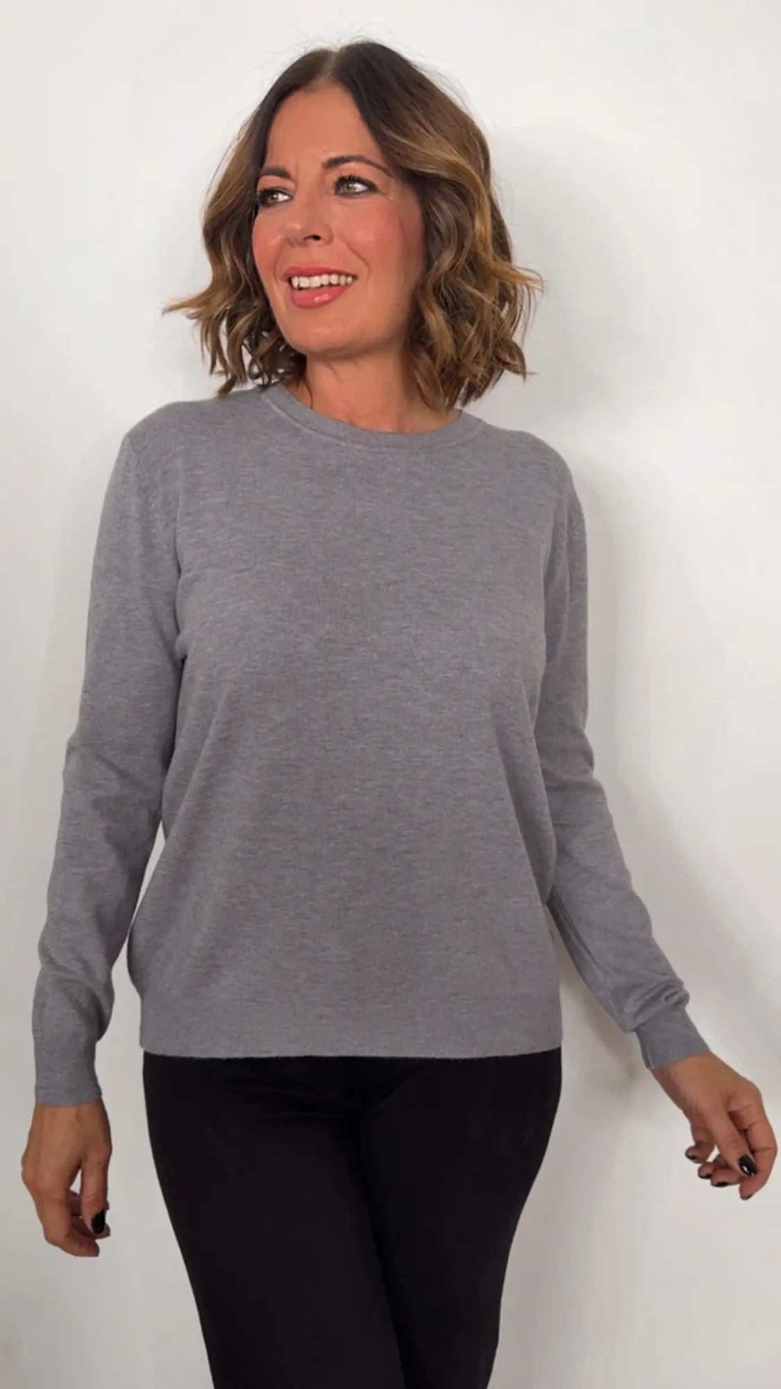 Medidas del Jersey de punto detalle cuello y manga acanalado GRIS