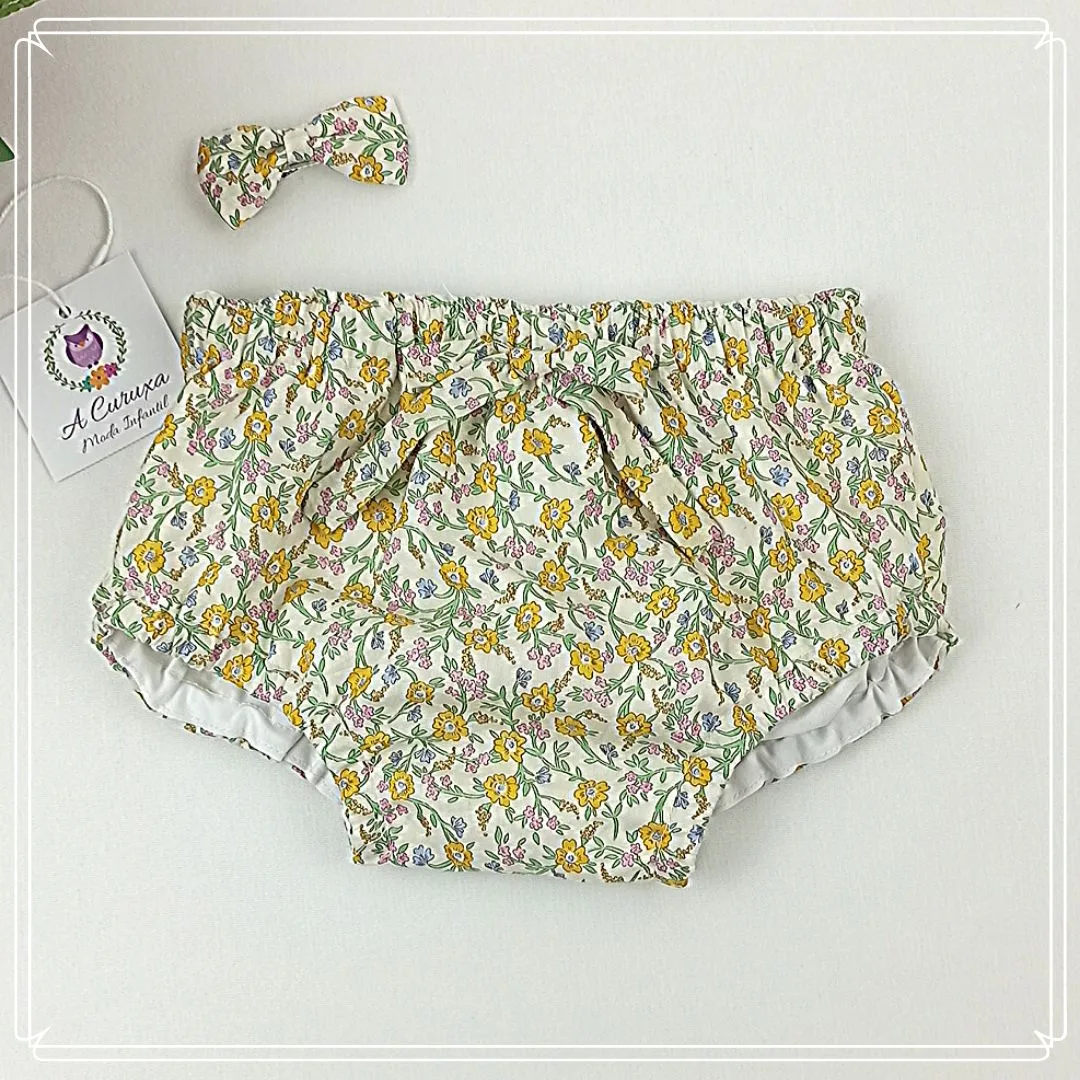 Jesusito Liberty “Hanna” a juego con la braguita, confeccionado con la tela estampada original de Liberty London Fabrics. Ambas piezas están forradas con popelin 100% algodón certificado. Si deseas un pantalón corto en lugar de una braguita puedes escribirnos y concretamos el modelo.