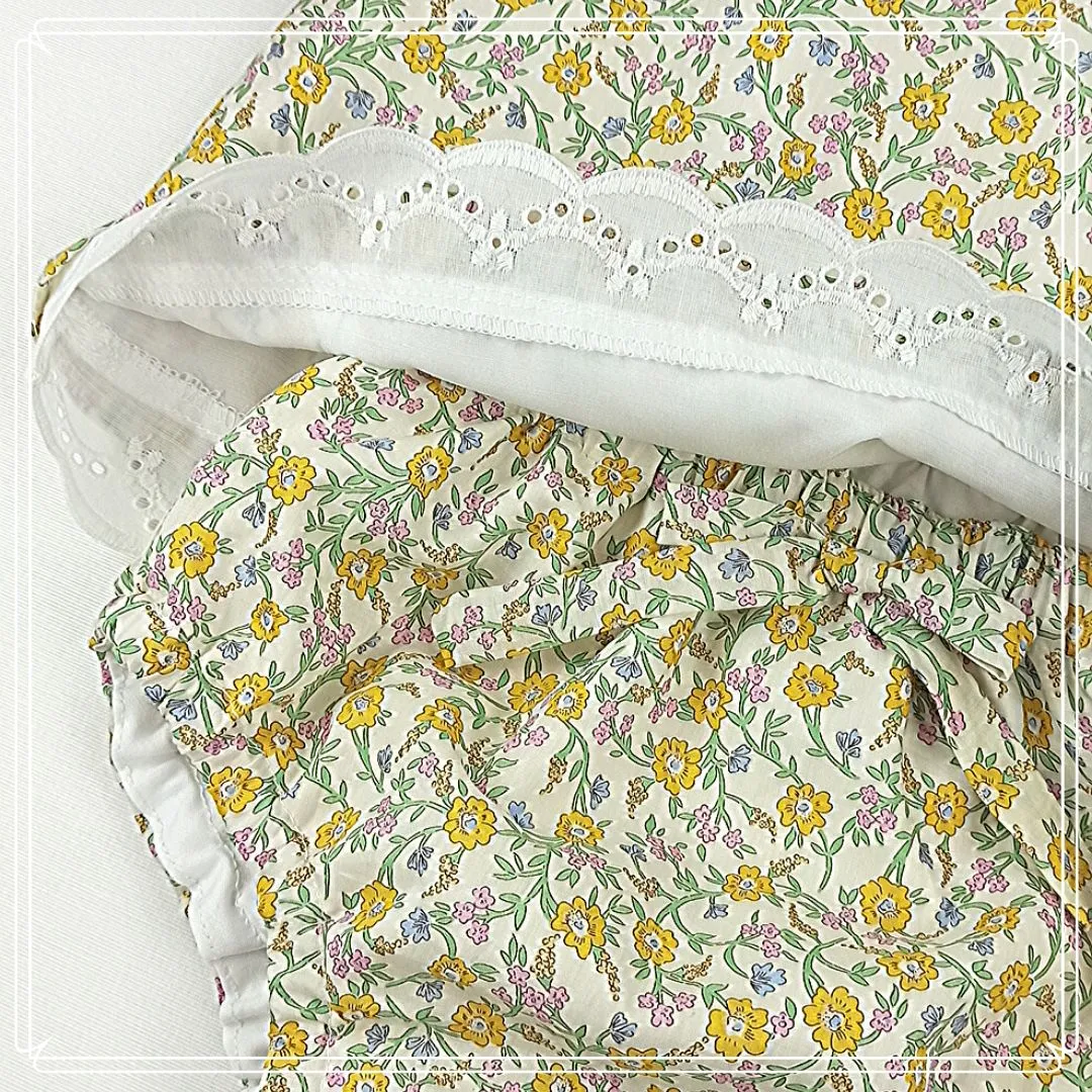 Jesusito Liberty “Hanna”, a juego con la braguita. confeccionado con la tela estampada original de Liberty London Fabrics.