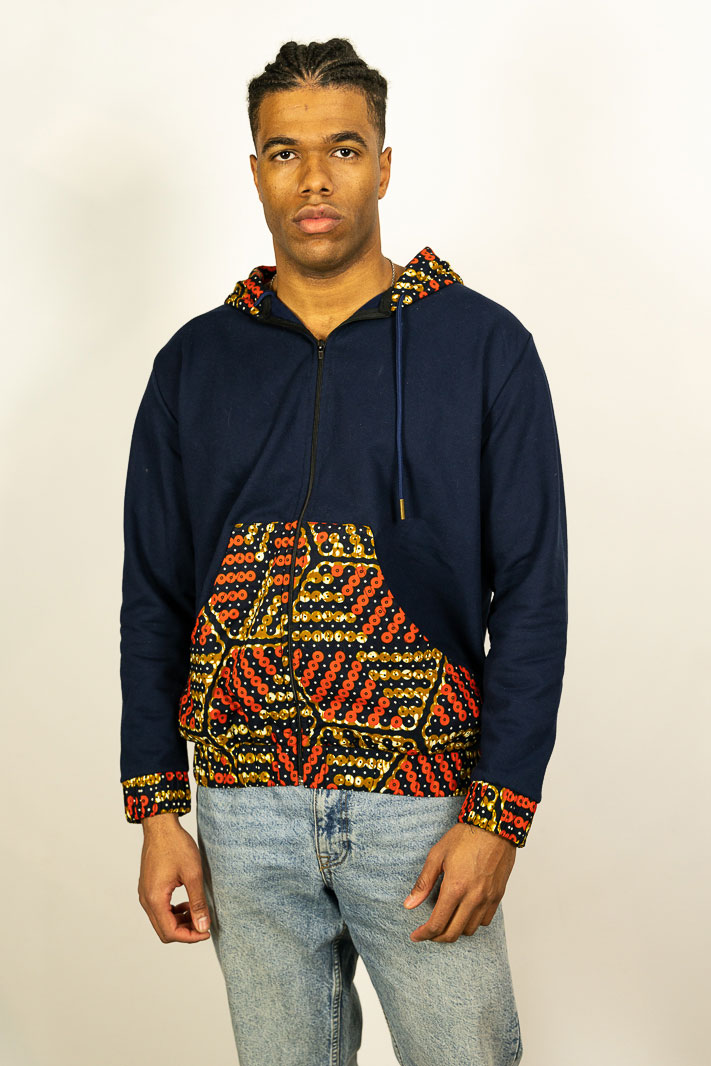 Nuestra sudadera sudaderas con cremallera Ogu-Ile estampada de tela africana es una excelente opción para aquellos que buscan un look único y llamativo. Añade un toque de color a tus entrenamientos con esta sudadera de tela wax.
