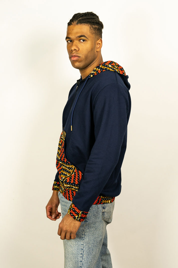 La sudadera sudaderas con cremallera Ogu-Ile estampada en tela africana es una tendencia de moda étnica, moda africana 100% algodón. La tela africana es conocida por sus vibrantes colores y patrones únicos, lo que las convierte en una excelente opción para diseños de sudaderas. Además, la tela africana es duradera y fácil de lavar, lo que hace que estas sudaderas sean una opción práctica y elegante para cualquier persona.