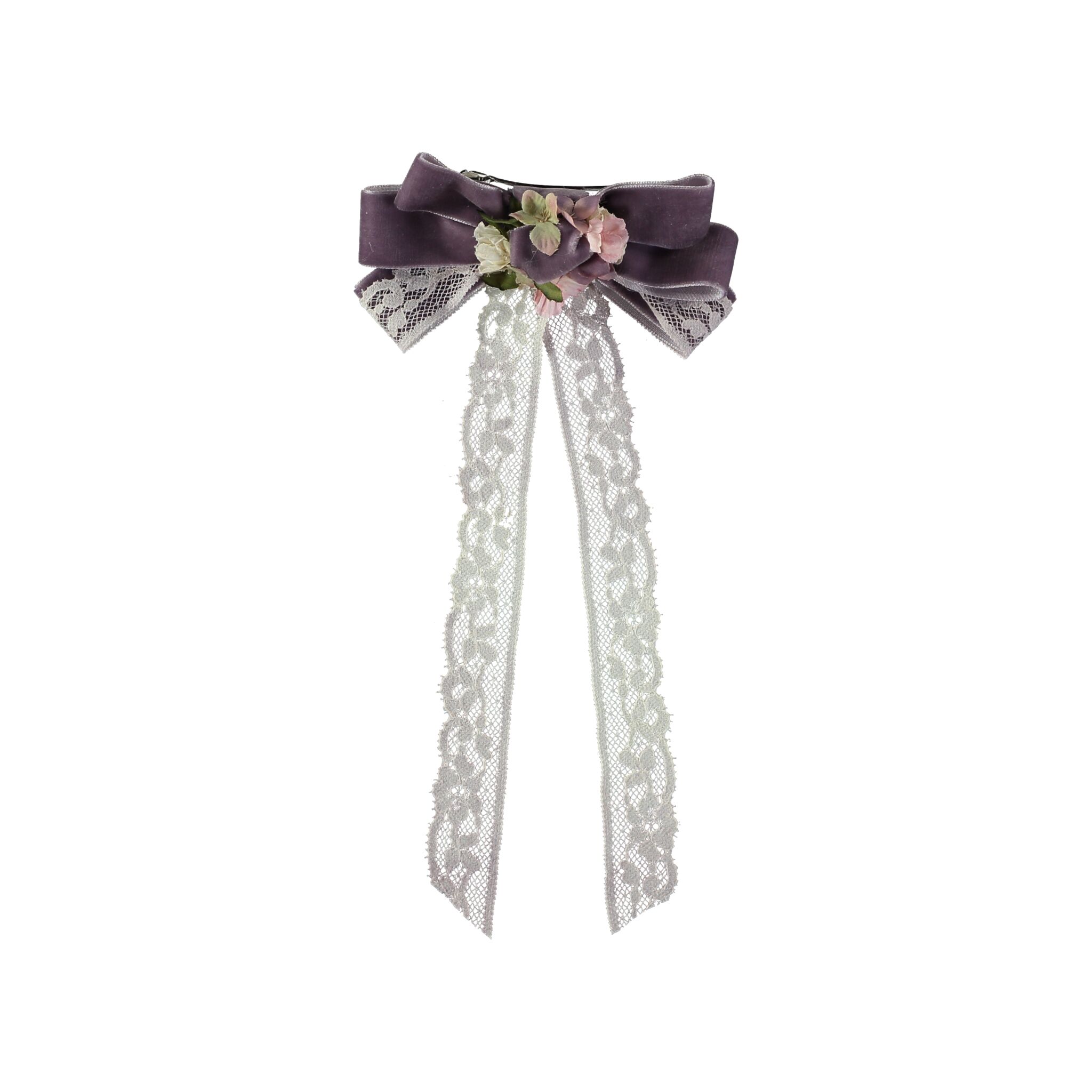 Tocado de comunión-ceremonia. Tocado de flores combinadas en color lila, con puntilla, de la marca Miss Garland.