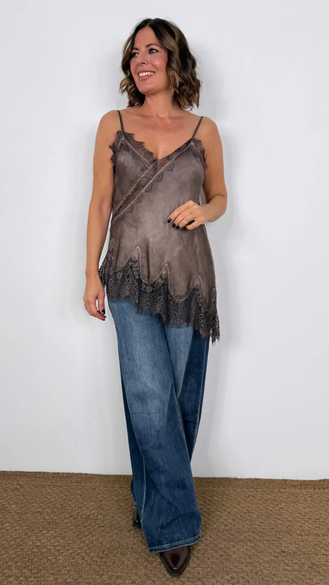 Medidas del Top lencero de tirante fino asimétrico CHOCOLATE