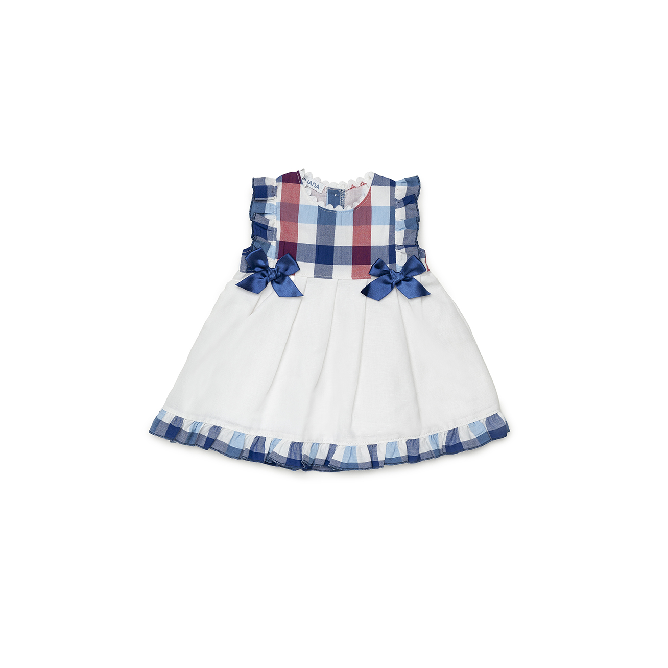 Vestido cortado cintura pecherin cuadros entre 3-48 meses.