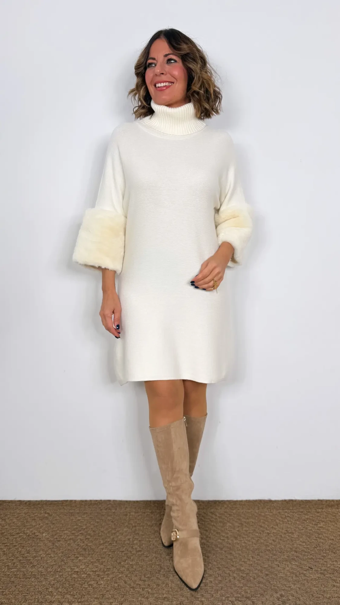 Vestido de punto con cuello cisne detalle manga pelo Beige – BRUMA
