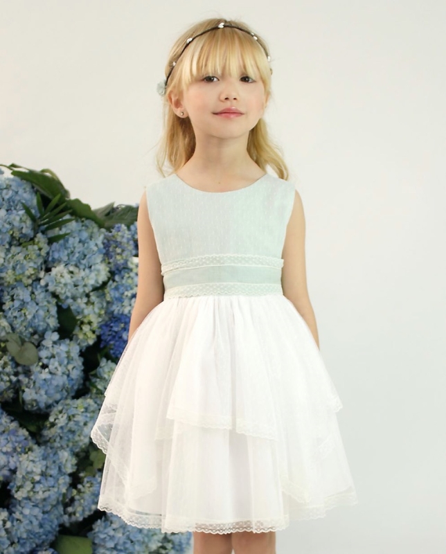 Vestido niña Amaya. Vestido infantil en lino y tul rosa de la nueva colección verano 2024