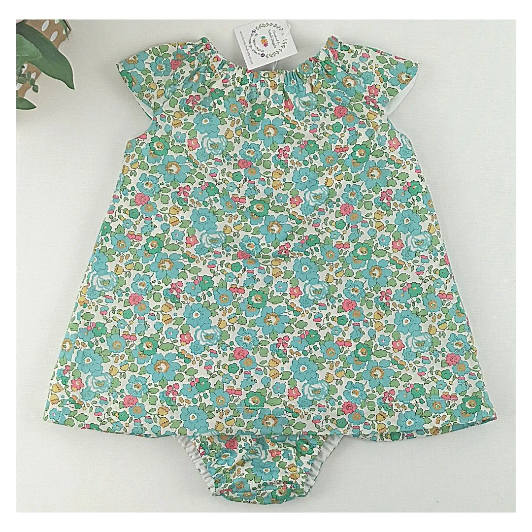 Vestido Liberty “Betsy”, a juego con la braguita hasta los 24 meses, confeccionado con la tela estampada original de Liberty London Fabrics.